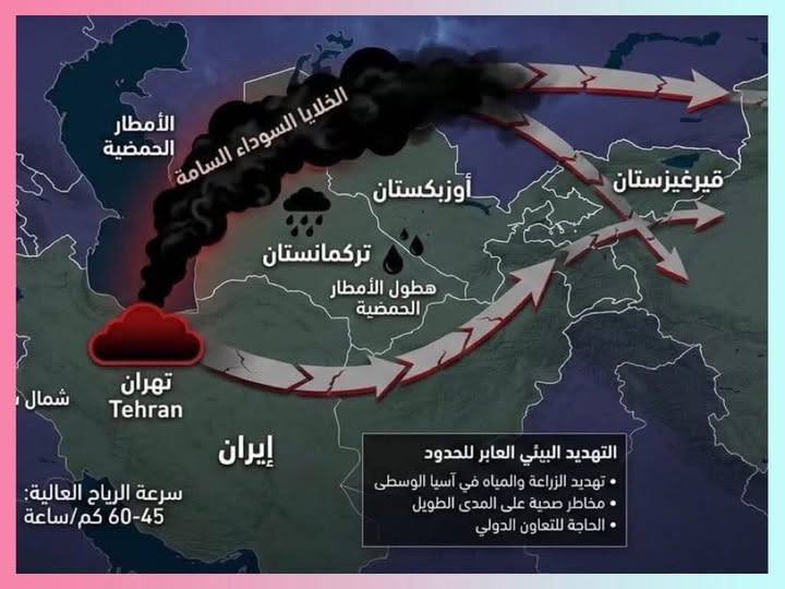 وبحسب تقديراته، قد تصل السحابة خلال فترة تتراوح بين 24 و48 ساعة إلى شمال شرق إيران، بما في ذلك مدينة مشهد والمناطق المحيطة بها، قبل أن تمتد نحو تركمانستان وأوزبكستان، خاصة مدينتي بخارى وسمرقند، إضافة إلى طاجيكستان وأجزاء من غرب الصين في إقليم شينجيانغ.