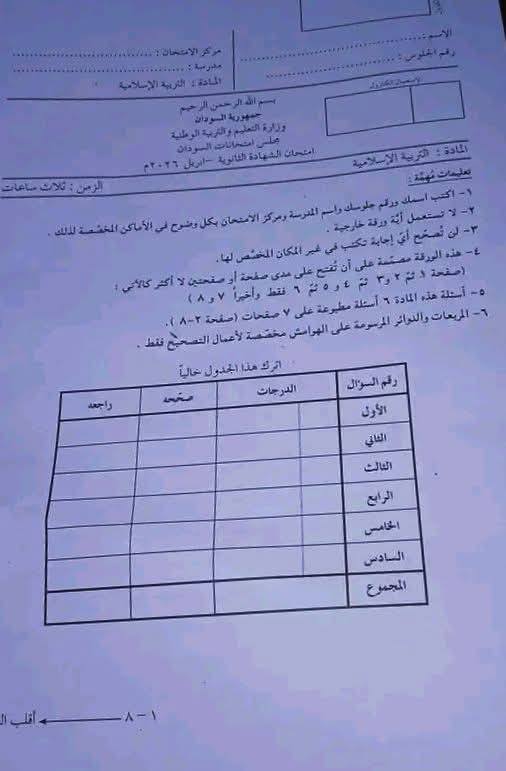 متابعات ـ موجز السودان الآن ـ أفاد عدد من طلاب مراكز امتحانات الشهادة الثانوية السودانية، يوم الاثنين، بأن اختبار مادة التربية الإسلامية جاء بمستوى صعوبة أعلى من المعتاد، متضمناً أسئلة طويلة وحجماً أكبر من أوراق الامتحان مقارنة بالأعوام السابقة.