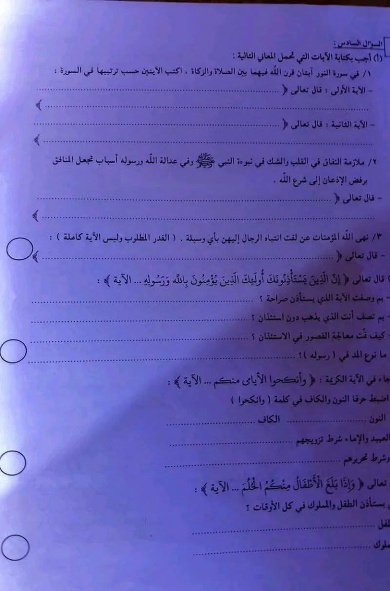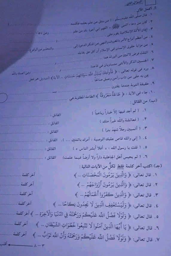 طلاب الشهادة يواجهون اختباراً مفاجئاً في التربية الإسلامية